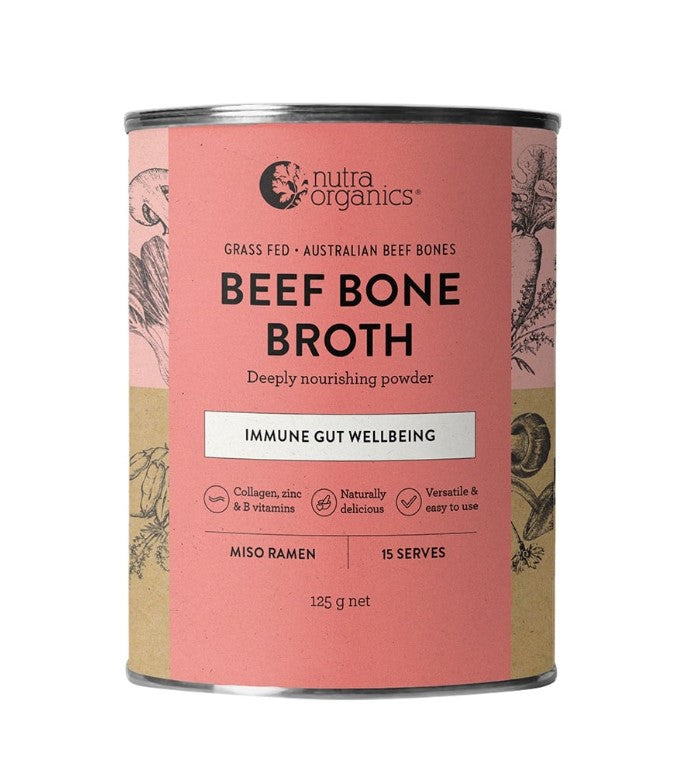 Our Beef Bone Broth is naturally loaded with essential vitamins for immune support. Red Miso is made from fermented soybeans, and has a long history of use in Japanese culture for promoting gut wellbeing and immunity. Zinc is an essential mineral for supporting our immune system and also contributes to cell protection from free radicals. B Vitamins help our metabolism, assist with tiredness and fatigue, and B12 further supports immunity.