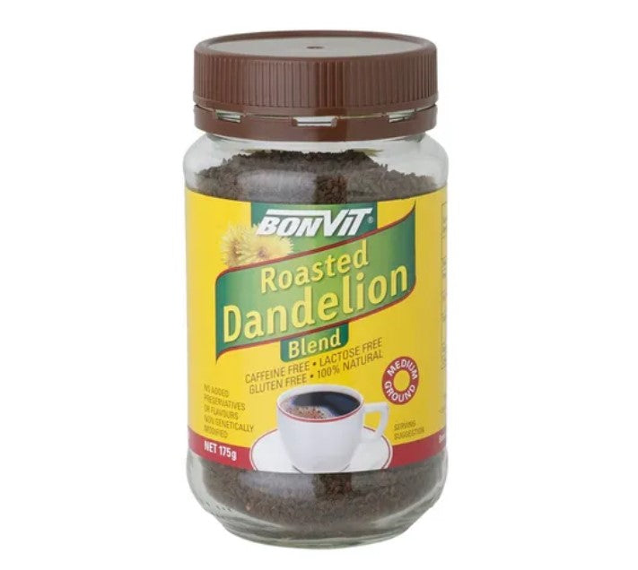 Bonvit Roasted Dandelion Blend is made from 100% roasted natural dandelion and chicory roots. This delicious, caffeine free alternative to coffee can be enjoyed by the whole family, day or night.