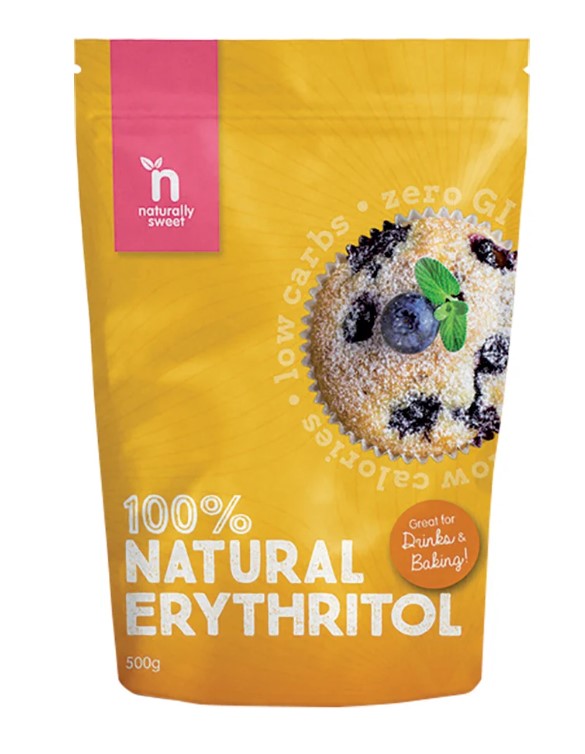 Erythritol is a naturally-derived sugar substitute, produced by a fermentation process that looks and tastes very much like sugar, yet has almost no calories. It comes in granulated and powdered forms.